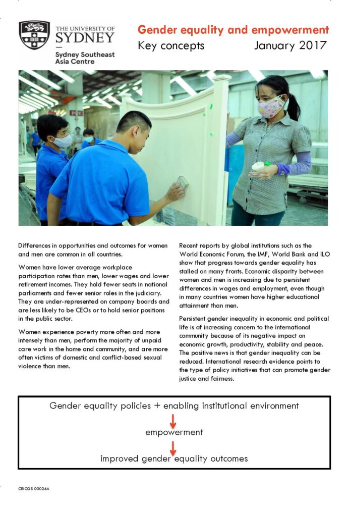 This report explores key concepts around gender equality and empowerment, emphasising the dual importance of gender equality policies and an enabling institutional environment. Gender equality demands that women and men have equal freedom to make choices about the life they want to live unhindered by gender stereotypes, roles and prejudices and that the...